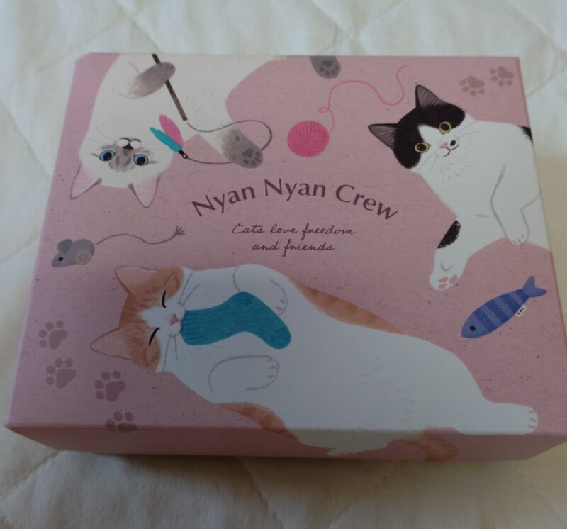 今年のネコちゃんの箱はワッツで購入しました。この時期は100円ショップを周るのが楽しいです。バレンタインのラッピング用やネコの日に向けての商品が並んでいます。今年の箱は可愛くてお気に入りです。チョコレートを入れるには少し高さがあったので、ワックスペーパーを敷いて何となく違和感がないように仕上げてあります。この箱は食品をそのまま入れることができますとも書いてあっていいお買い物でした。